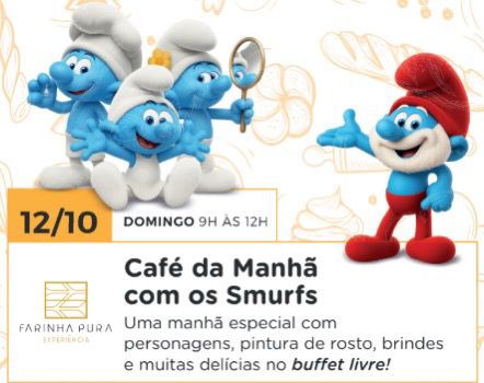 O Empório Farinha Pura, em Botafogo, na Zona Sul do Rio, preparou uma programação encantadora para celebrar o Mês das Crianças. O grande destaque é o tradicional Café da Manhã com personagens, que acontece no Dia das Crianças, 12 de outubro (domingo), das 9h às 12h. O evento contará com buffet livre recheado de delícias, pintura de rosto, distribuição de brindes e a presença dos Smurfs, os personagens azuis mais queridos do mundo. Crianças até 3 anos não pagam; de 4 a 8 anos o ingresso custa R$ 49,90; e adultos, R$ 84,90.